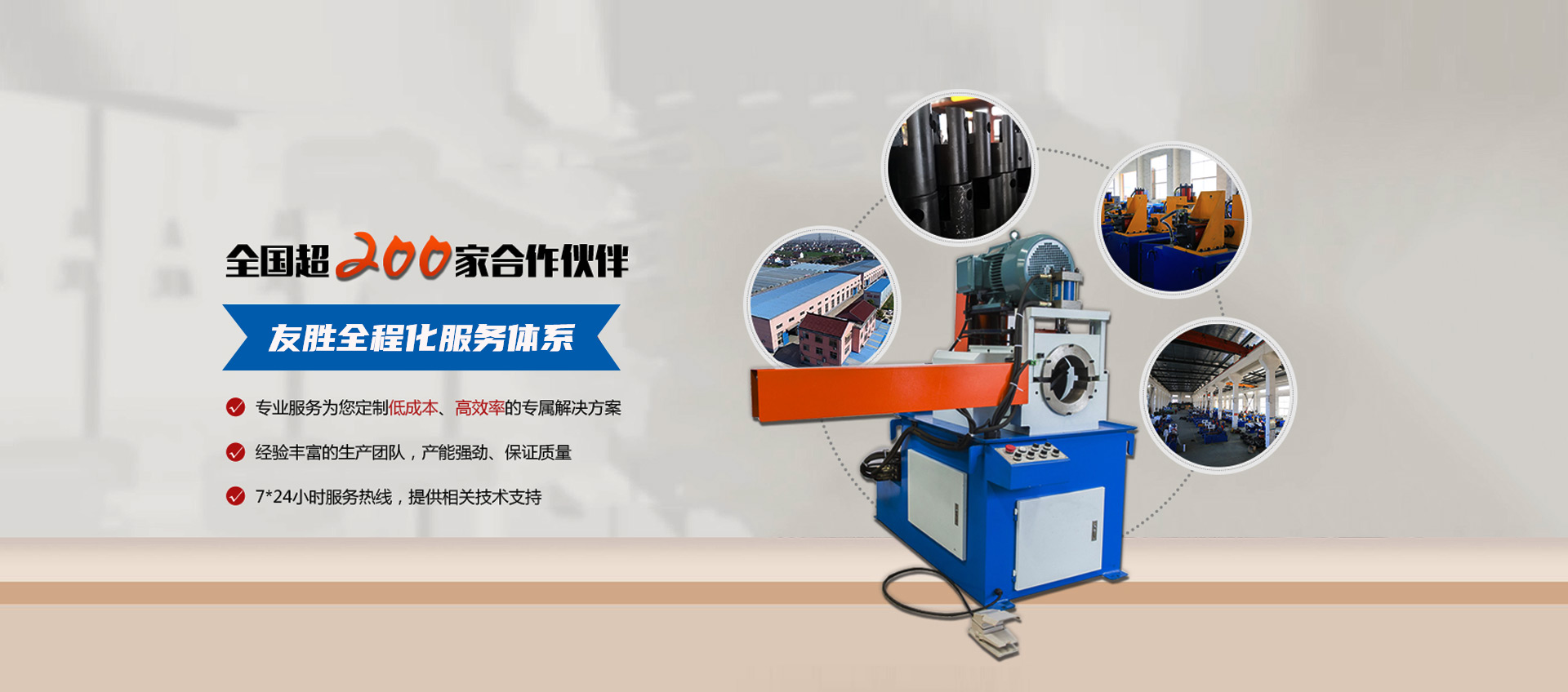 張家港市友勝機械制造有限公司,地處人杰地靈的江南水鄉著名衛生城市一張家港,技術經濟基礎雄厚,水陸交通便捷。 本公司專業制造YS-75NCT/YS-89NCT彎管機系列、YS-NC單頭系列彎管機、YS-38NC雙頭液壓彎管機、YS-CNC型三維數控液壓彎管機系列、半自動型倒角機、大型半空心鉚釘機、切割機、圓鋸機、壓彎機、金屬圓管、圓棒倒角機、圓棒冷鋸機、軸承鋼鋸機、全自動彎管機、全自動切管機、沖弧機、沖孔機、管端成型機等各類管型材加工機械,及一些非標定制設備;產品廣泛用于造船,汽車摩托車、自行車、童車、石油化工、鋼制家具等各種管類加工行業,是各種管型材切割彎曲、縮擴鉚接加工的理想設備,銷售網絡遍及各地,產品深受用戶好評。